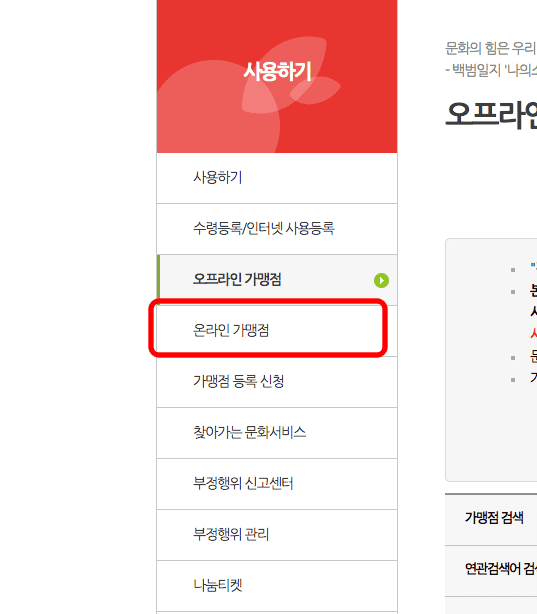 문화누리카드 사용처 2 - 온라인