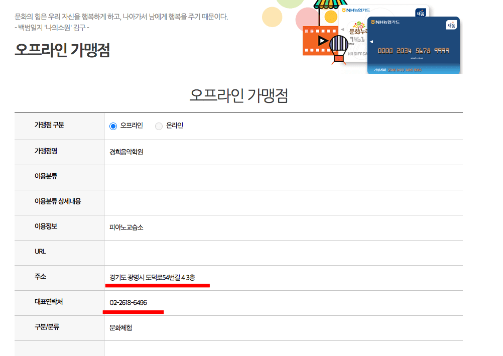 문화누리카드 사용처 1 - 오프라인