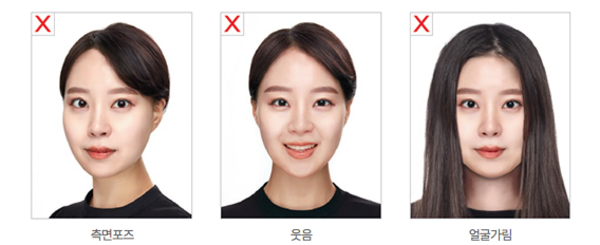 포토샵으로 수정한 사진은 사용할 수 없으며 배경은 균일한 흰색이어야 합니다. 테두리가 있으면 안되며 다른 사람이나 사물이 노출된 사진 또한 사용할 수 없습니다.