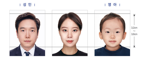 우리나라의 여권사진 사이즈는 국제민간항공기구에서 정한 기준을 따르고 있습니다. 가로 3.5cm, 세로 4.5cm인 천연색 상빈신 정면 사진이어야 합니다. 여권사진을 촬영하실때에는 정수리부터 턱까지 머리길이가 3.2~3.6cm이어야 하고 여권사진은 여권발급 신청일 전 6개월 이내에 촬영된 사진이어야 인정됩니다.