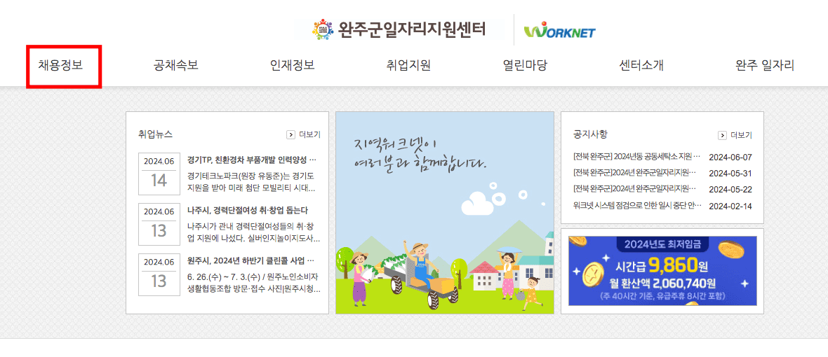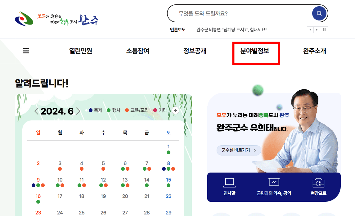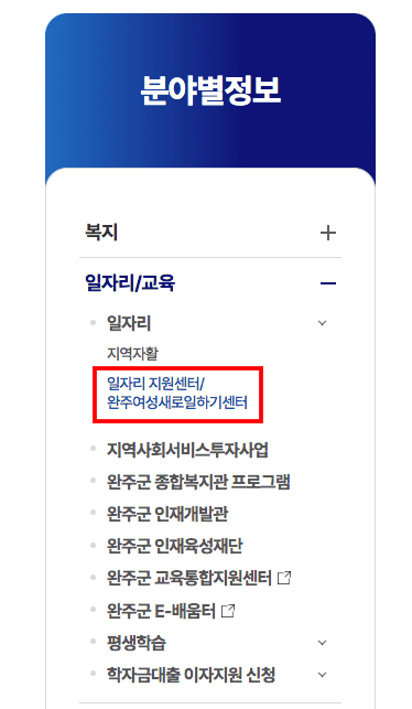완주군청 홈페이지 일자리 및 복지 정보 확인