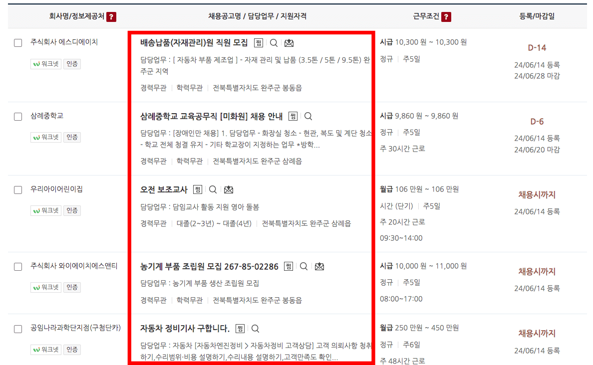완주군 홈페이지에는 완주군에서 일자리를 찾거나 구인을 원하는 사장님들을 위한 일자리 정보 공간을 마련해 두고 있습니다. 아래 링크를 통해 홈페이지로 이동해 보시기 바랍니다.