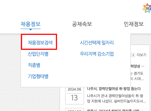 우측 하단의 검색 버튼을 클릭하시면 채용정보가 표시되니 직접 확인해 보시기 바랍니다.