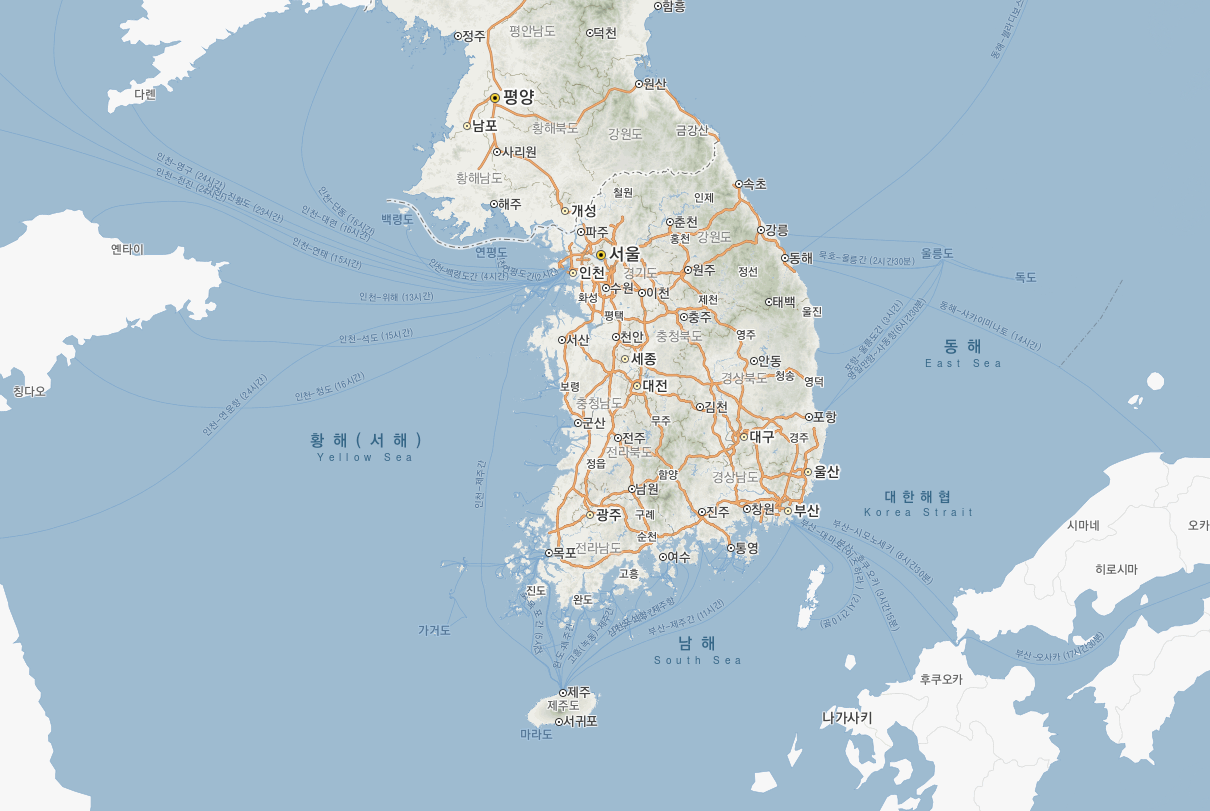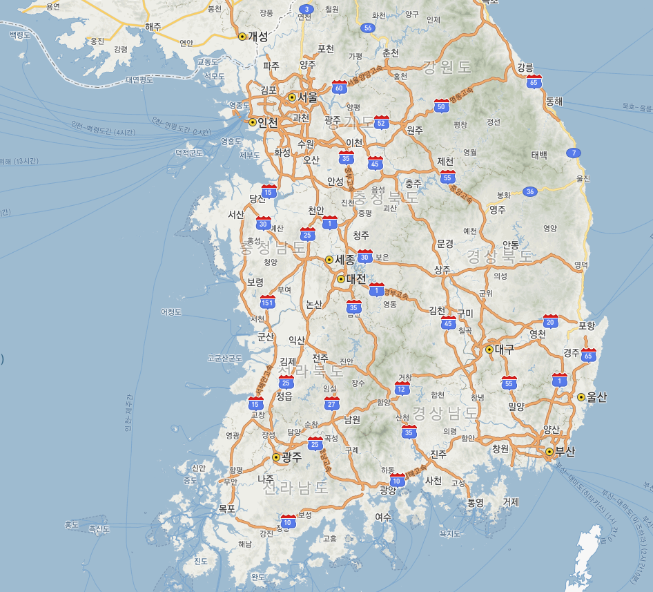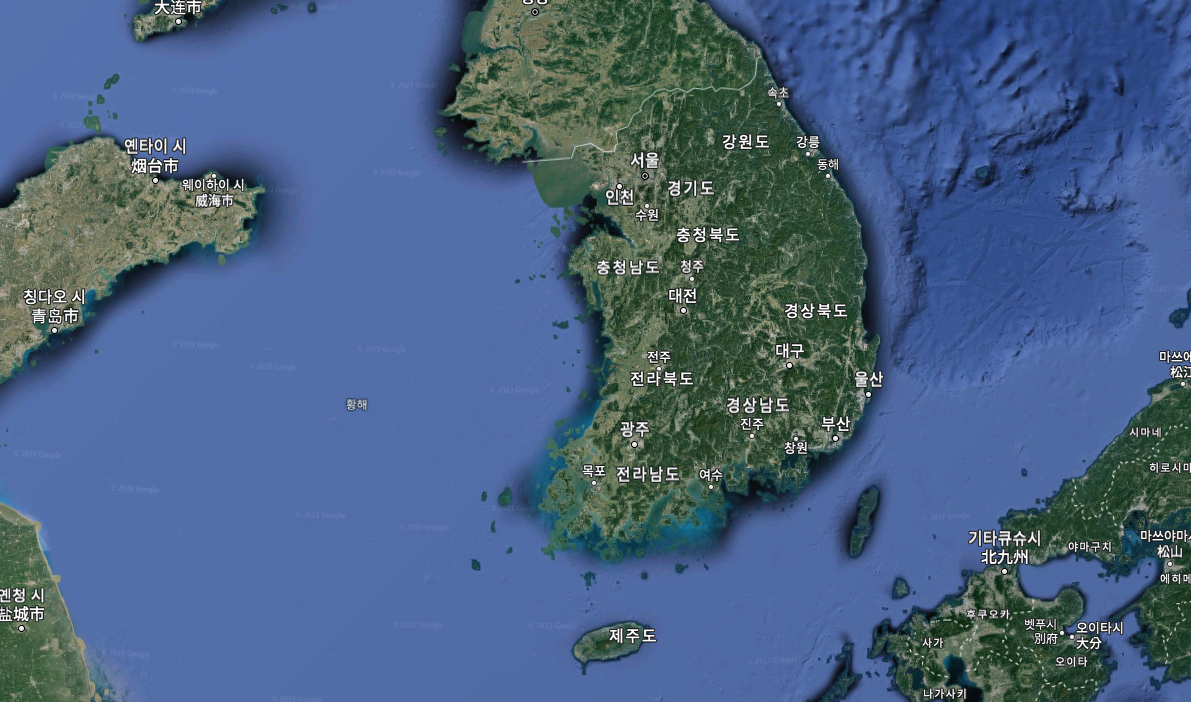 구글 지도에서 우리나라 지도 크게 보기