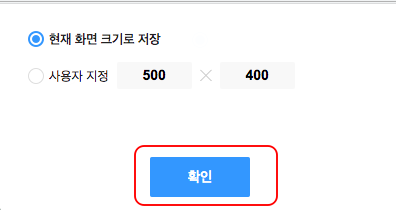 화면 크기에 대한 선택메뉴가 표시됩니다. 사용자 지정에서 가로 세로 비율을 직접 입력하시거나 현재 화면 크기로 저장을 선택하시고 확인 버튼을 클릭합니다.