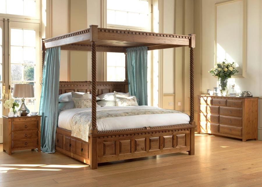 각 모포스트에 높은 기둥이 있는 침대로, 고전적이고 우아한 디자인을 가지고 있습니다. 모기장을 설치하기 용이한 장점도 있습니다.