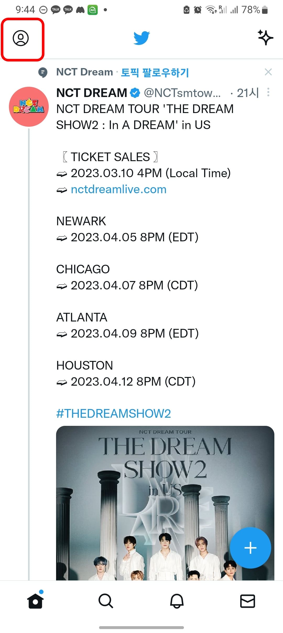 모바일에서도 트위터 계정을 탈퇴할 수 있습니다. 먼저 트위터 어플을 실행합니다. 이후 좌측 상단의 프로필 아이콘을 터치합니다. 프로필 메뉴가 표시되면 하단 프로페셜널용 도구 > 설정 & 지원 > 설정 및 개인정보 메뉴를 터치합니다.
