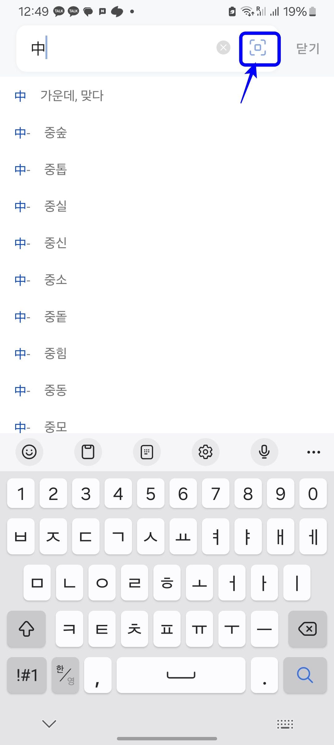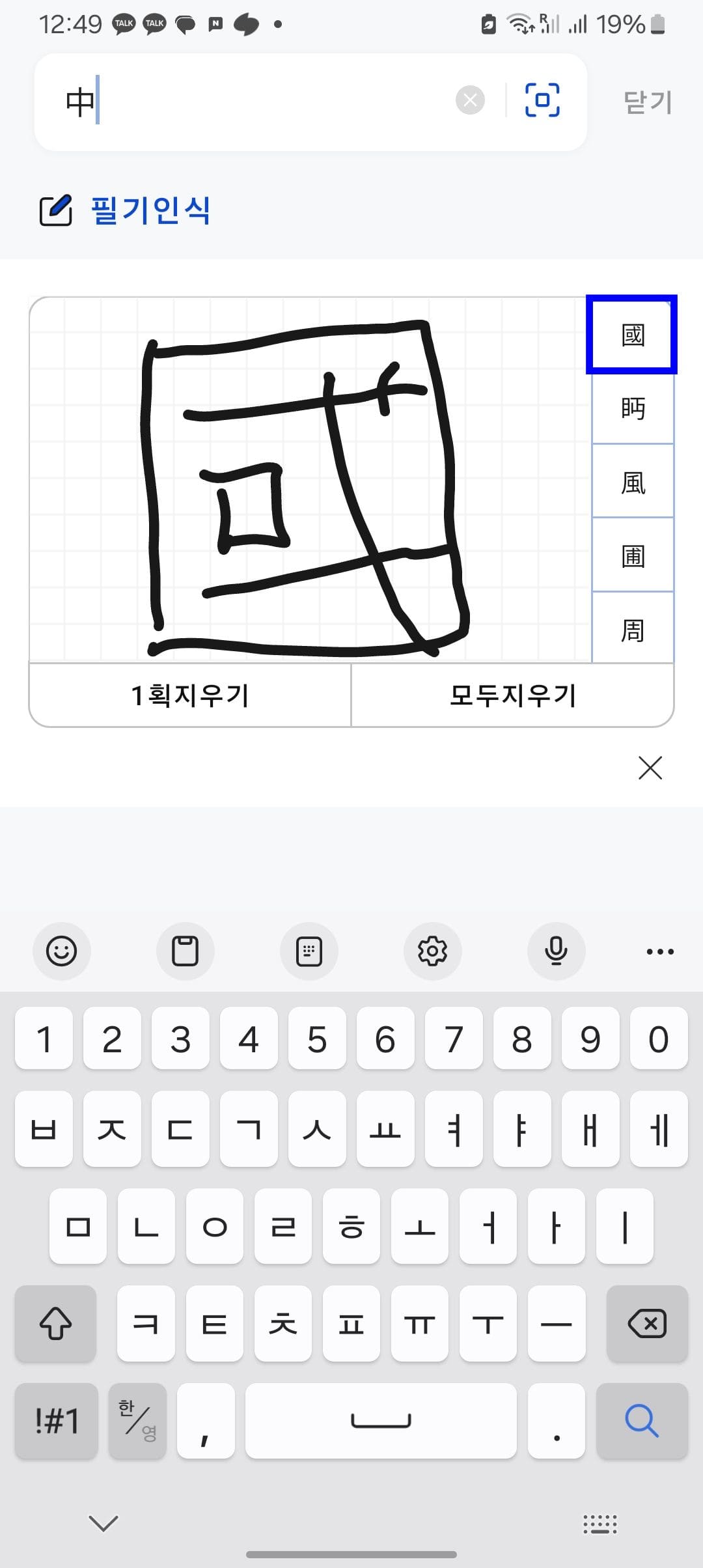 모바일에서 한자 써서 찾기