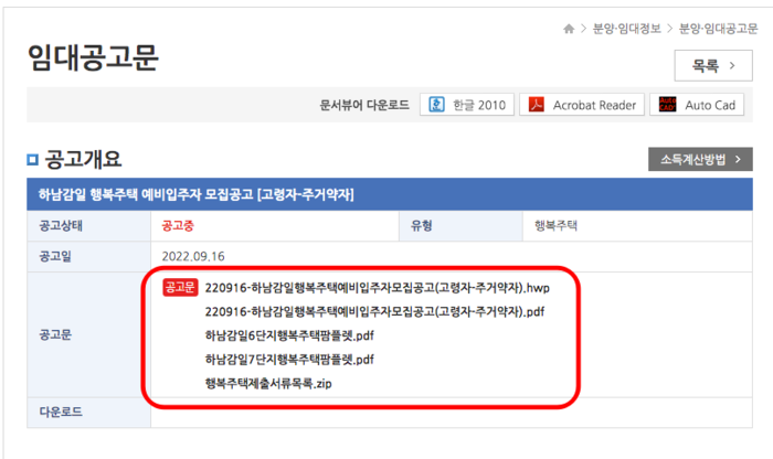 하남감일 행복주택 모집공고를 선택해 보았습니다. 첨부파일을 확인하시면 입주자 모집공고, 팜플렛, 행복주택 제출 서류 목록 등을 확인할 수 있습니다. 해당 내용을 확인하시면 사업주체가 지정한 장소에서 신청서를 작성하고 관련 서류를 제출하면 신청이 완료됩니다.