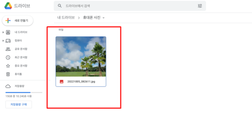 업로드된 사진들은 구글 드라이브 홈페이지에서 로그인후 바로 확인 및 다운로드가 가능합니다.
