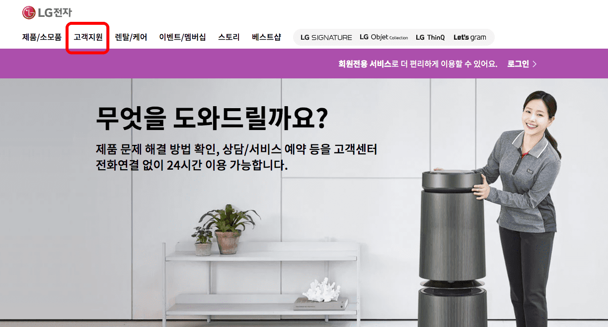 고객센터로 전화하지 않아도 서비스/상담 예약 접수, 제품 문제해결 방법 및 센터/매장 확인 등 제품 구입/사용 관련 내용을 바로 확인 및 신속한 처리를 위한 지원해 드립니다.