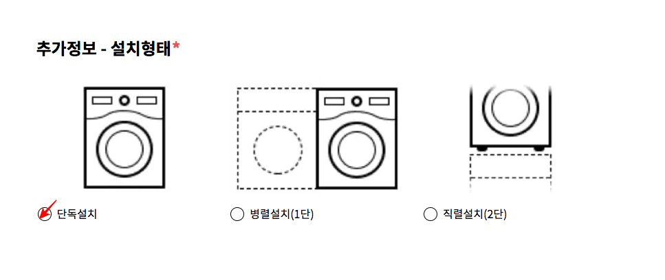 하단 추가정보에서 설치형태를 선택합니다. 예약자 정보 입력 메뉴가 표시됨녀 이름과 휴대폰 번호, 주소 찾기 버튼을 클릭하여 상세 주소를 입력하시고 하단에서 희망 일시를 선택하면 AS 접수가 완료됩니다.