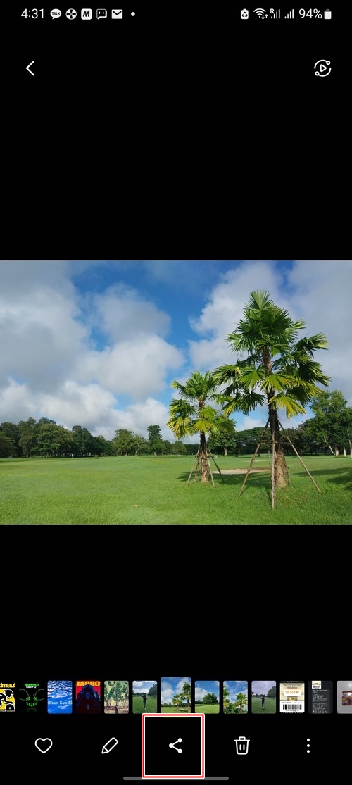원하는 사진을 선택한후 하단에서 위의 사진에 표시된 공유하기 아이콘을 터치합니다.