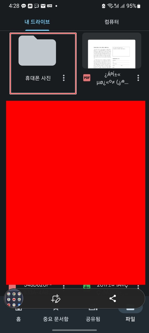 먼저 위의 사진처럼 스마트폰에서 구글 드라이브 어플을 실행합니다.