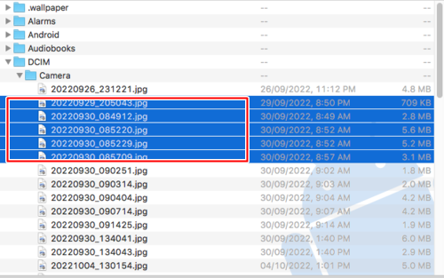 DCIM > Camera 폴더를 선택합니다.